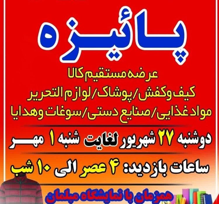 نمایشگاه پاییزه از امروز دوشنبه ۲۷ شهریور لغایت شنبه اول مهرماه ۱۴۰۲ همه روز از ساعت ۴ عصر الی ۱۰ شب پذیرای بازدیدکنندگان است.